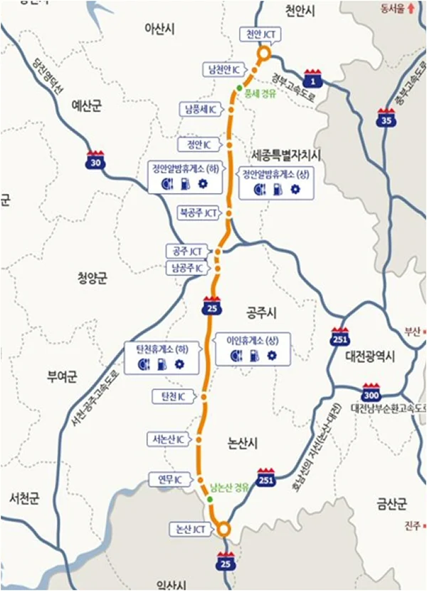 | ▲ 천안논산고속도로 노선도 |